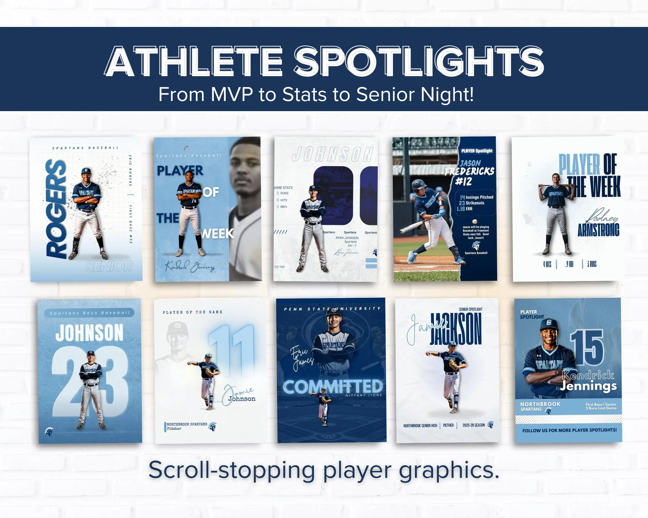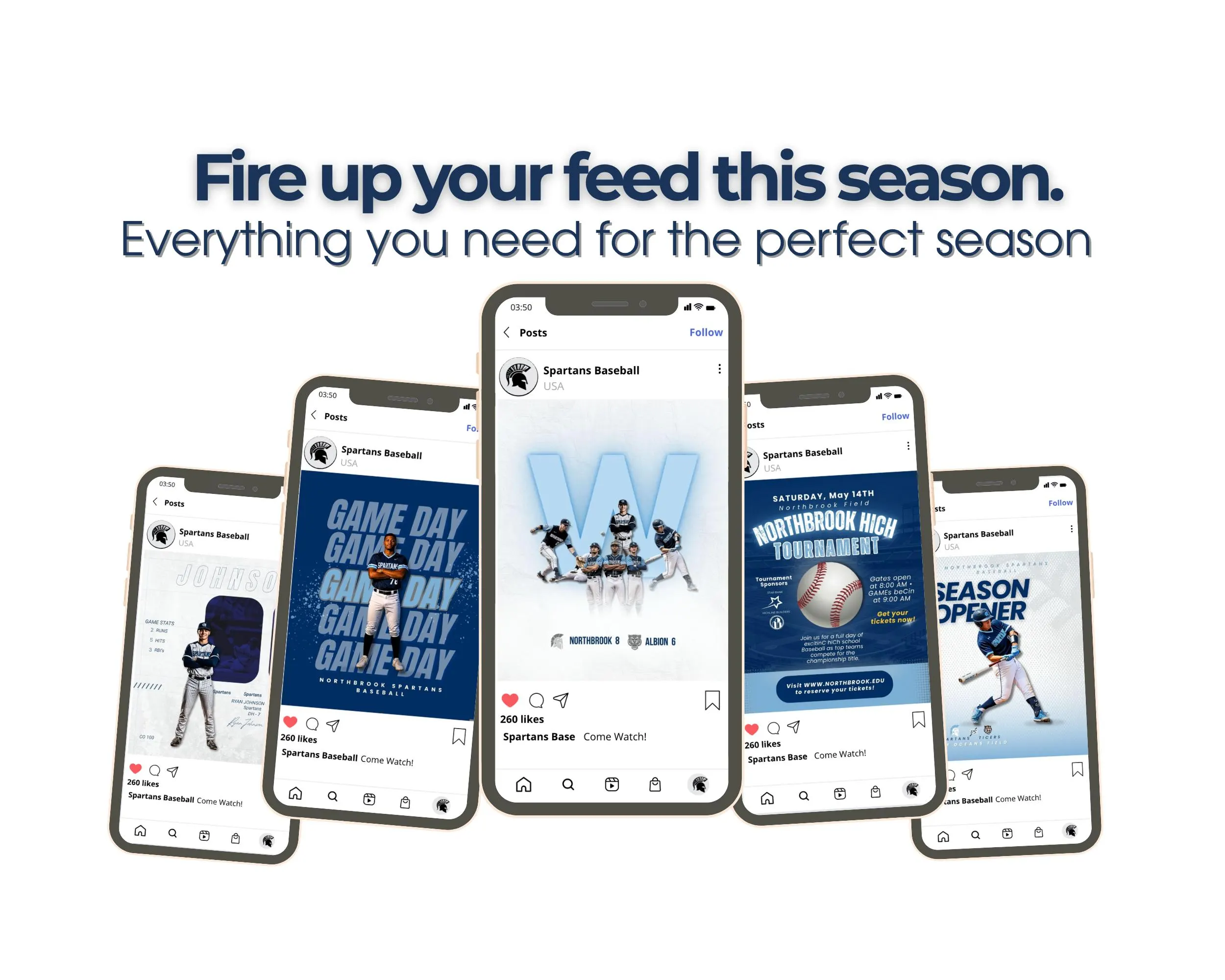 Elevate your team’s social media with this professionally designed 78-pack of Baseball Instagram Templates—created to help your program post bold, eye-catching graphics all season long.