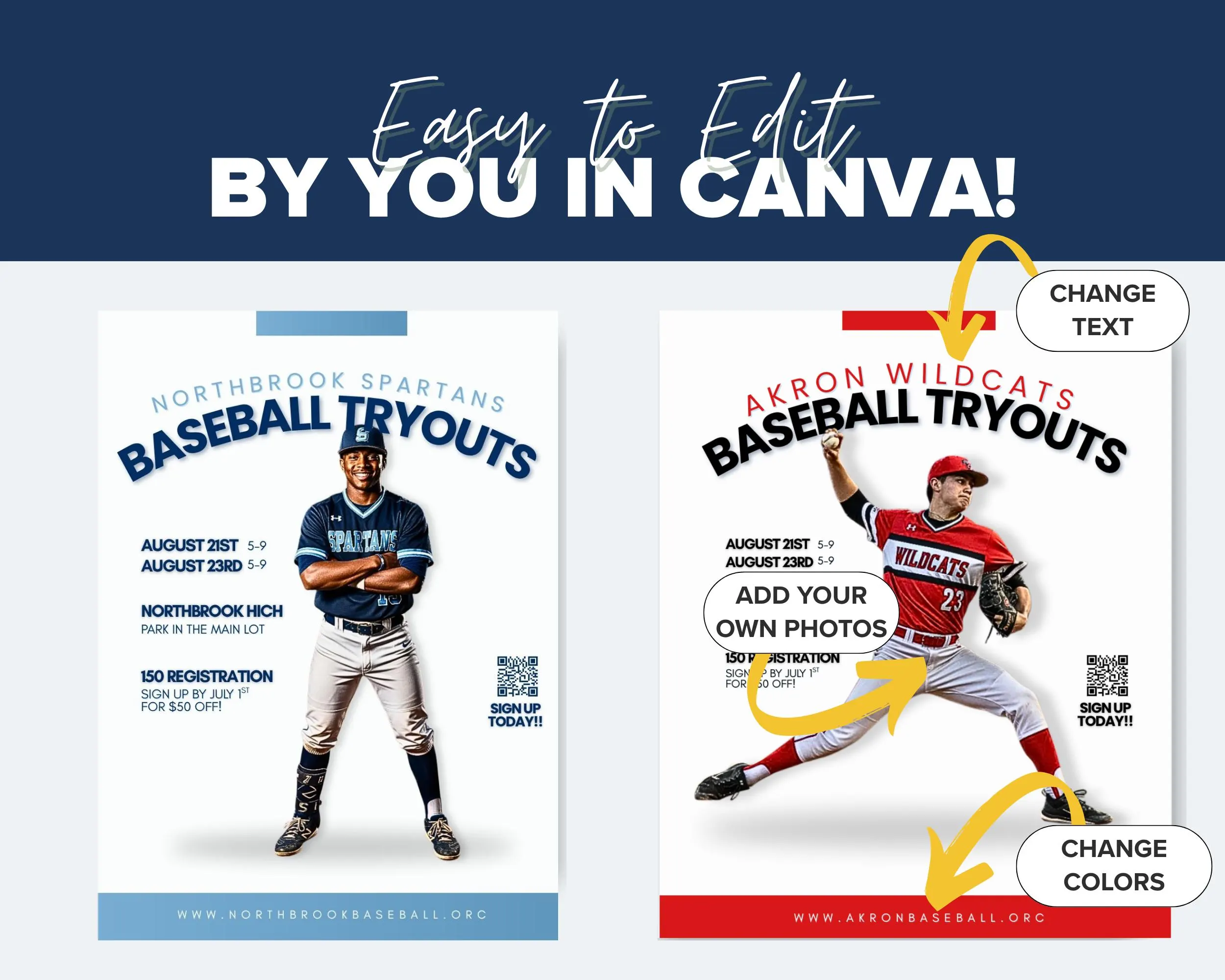 These fully editable Canva templates make it easy to create a consistent, high-quality look for your baseball team—whether you’re a coach, team mom, booster club, or social media manager.