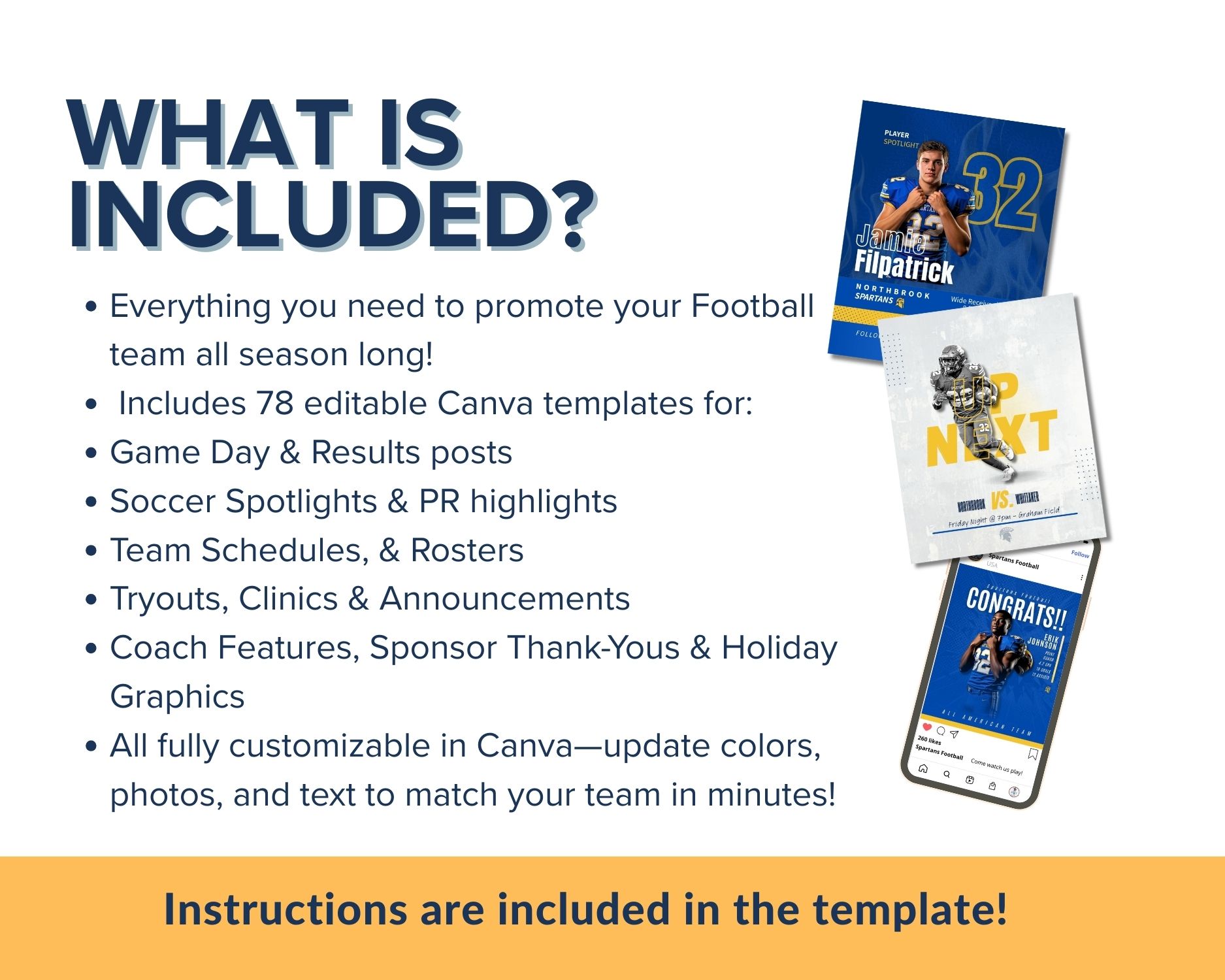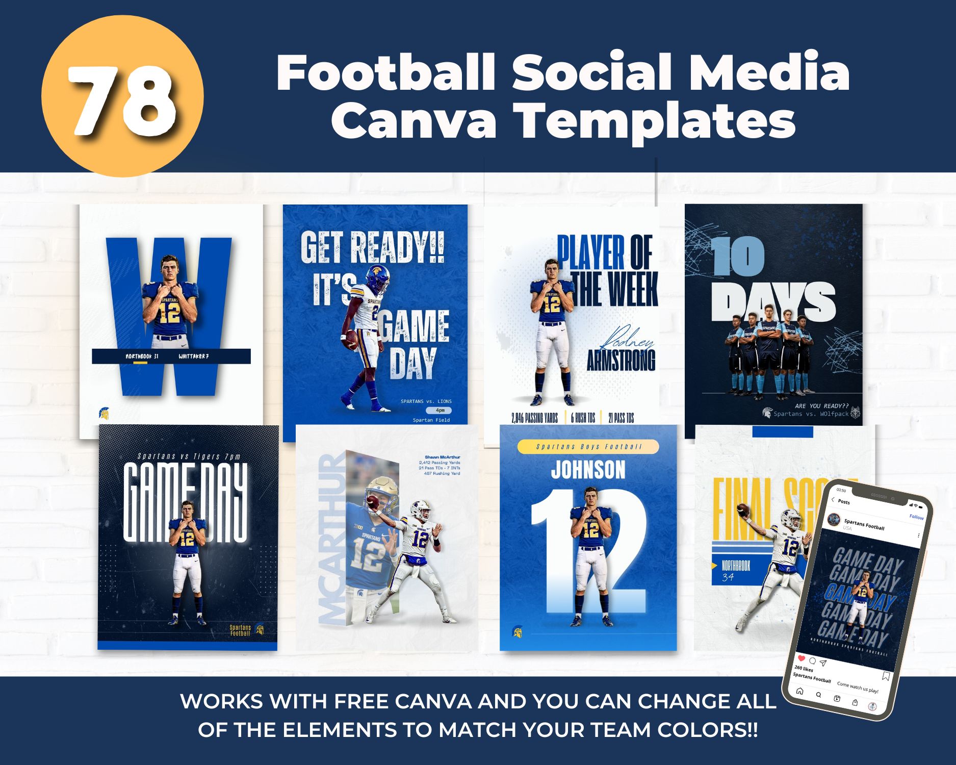 Football Social Media Canva Templates Bundle (78 Templates) + Bonus Social Media Strategy Guide