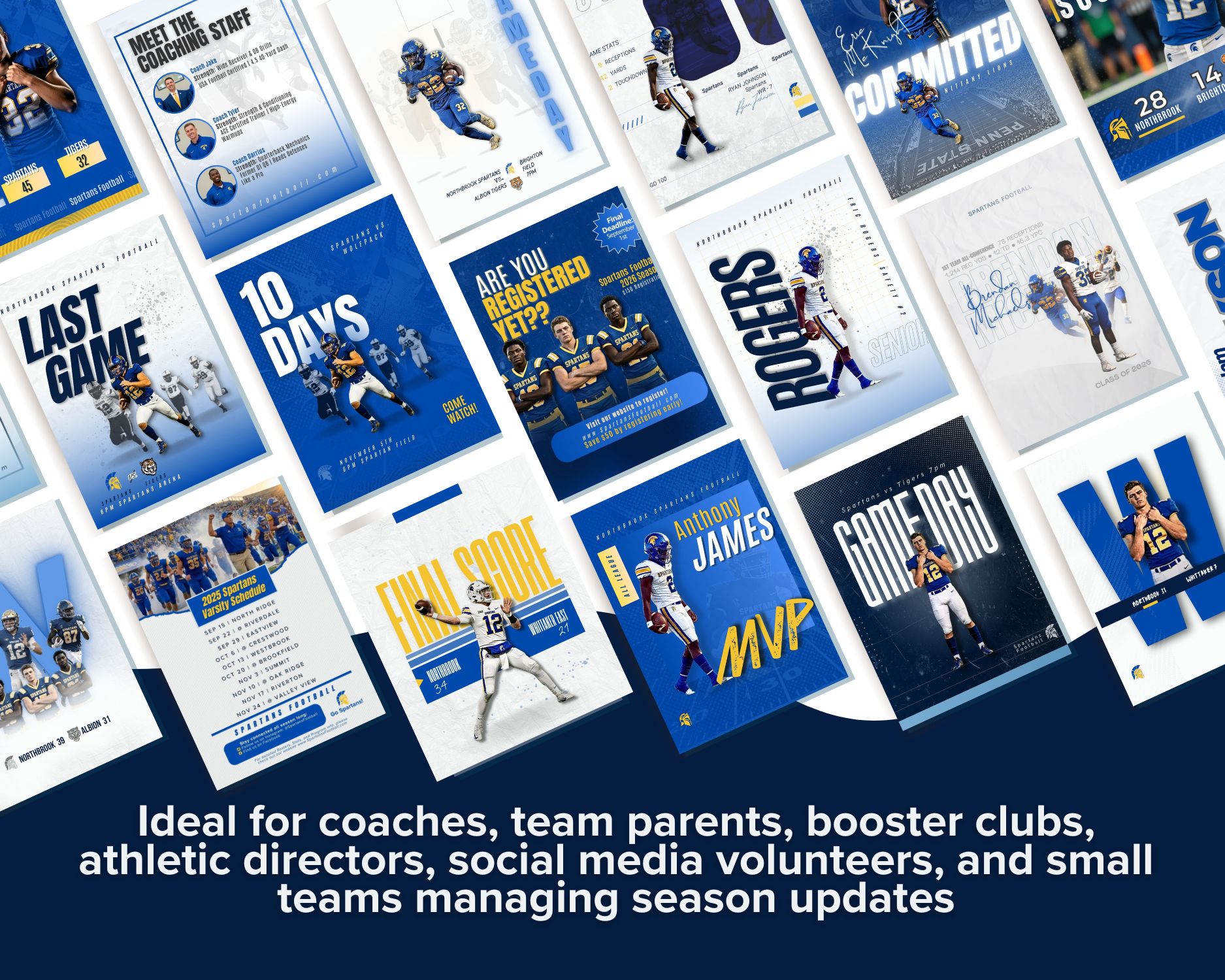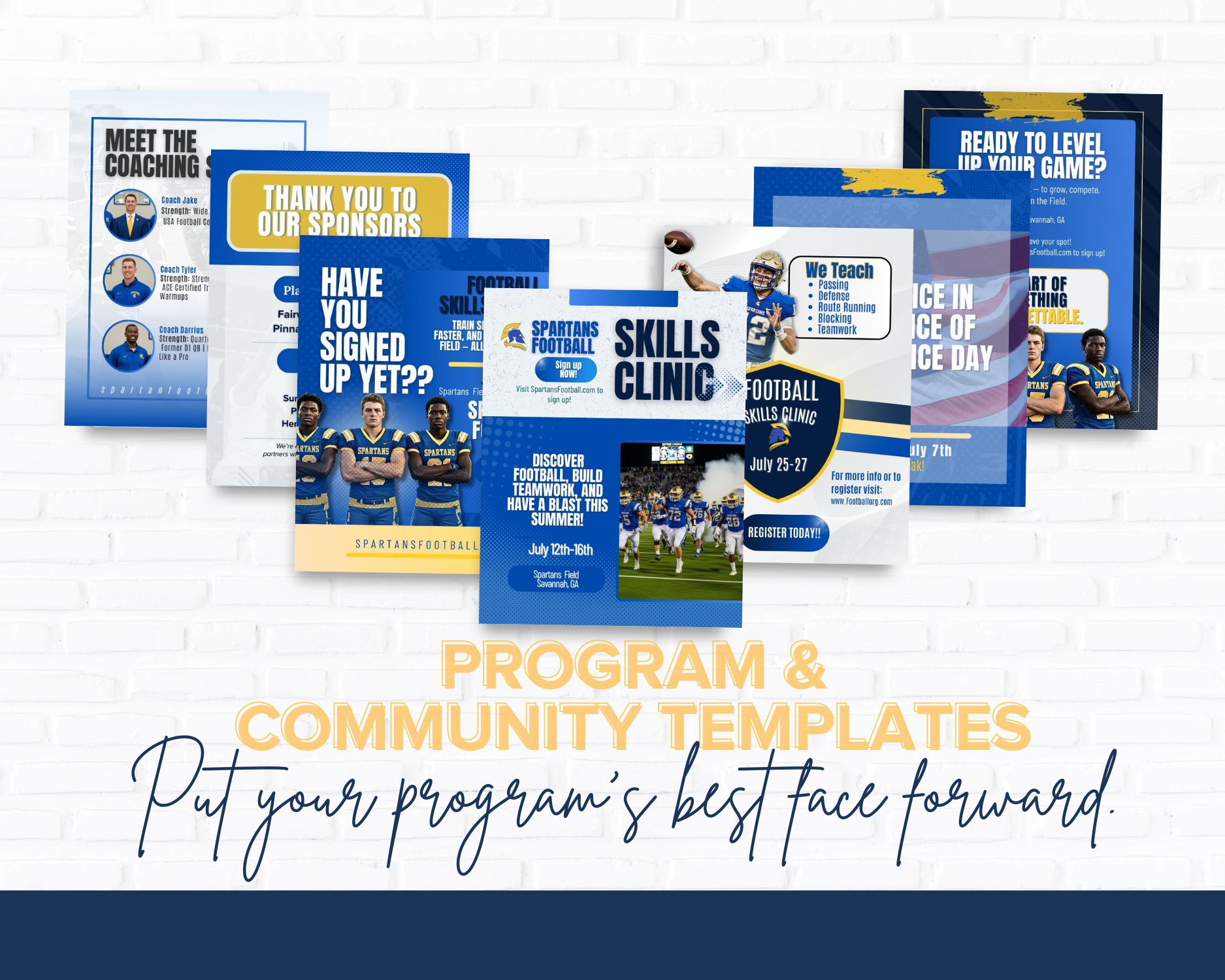 - Program & community templates (tryouts, clinics, announcements, sponsor thank-yous, coaching staff & more)