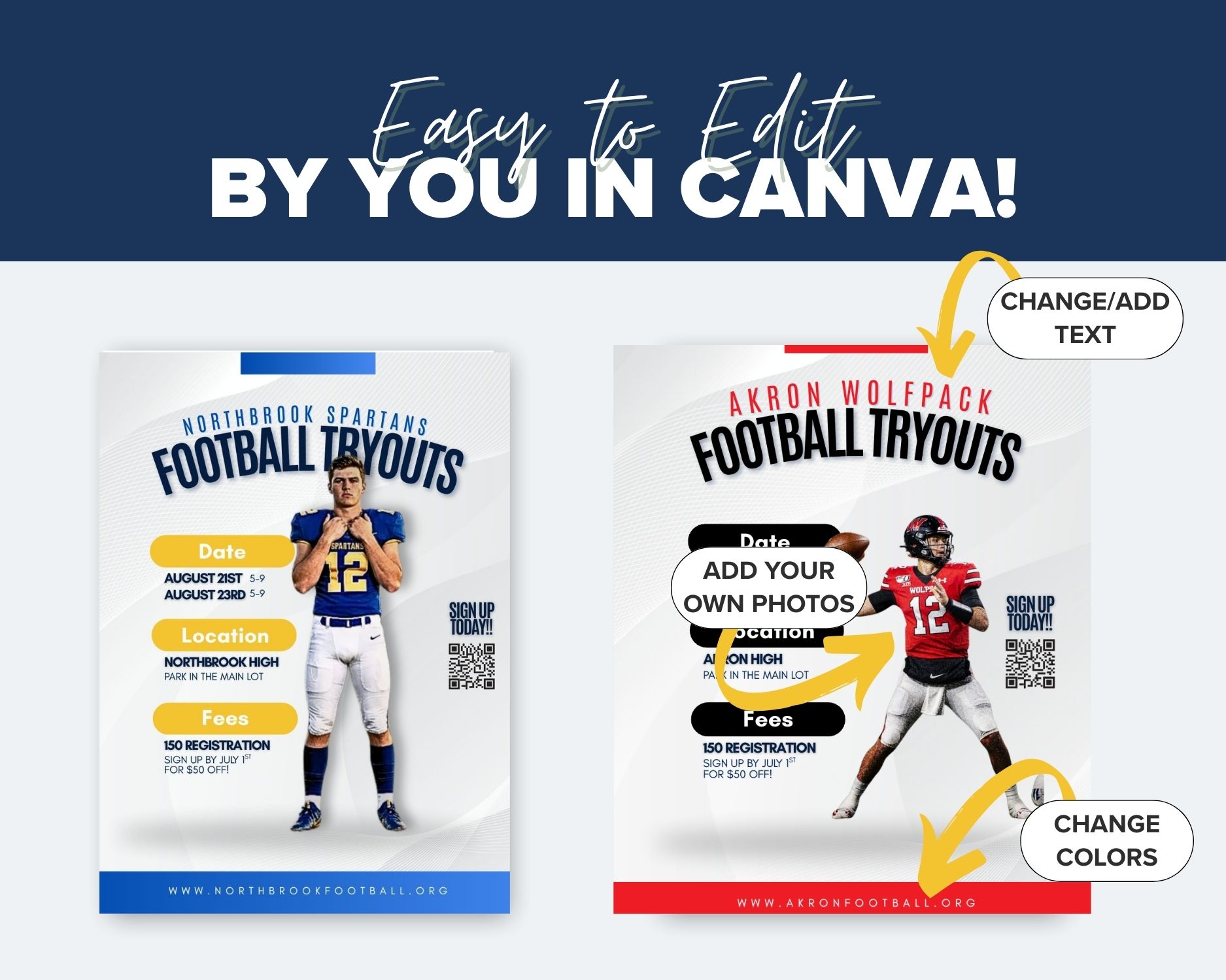 Make your football team’s social media look professional all season—fast. This football social media Canva templates bundle includes 78 editable Canva templates for game day posts, athlete spotlights, schedules/rosters, and program announcements. Customize in minutes using free Canva—swap photos, update text, and change colors to match your team brand.
