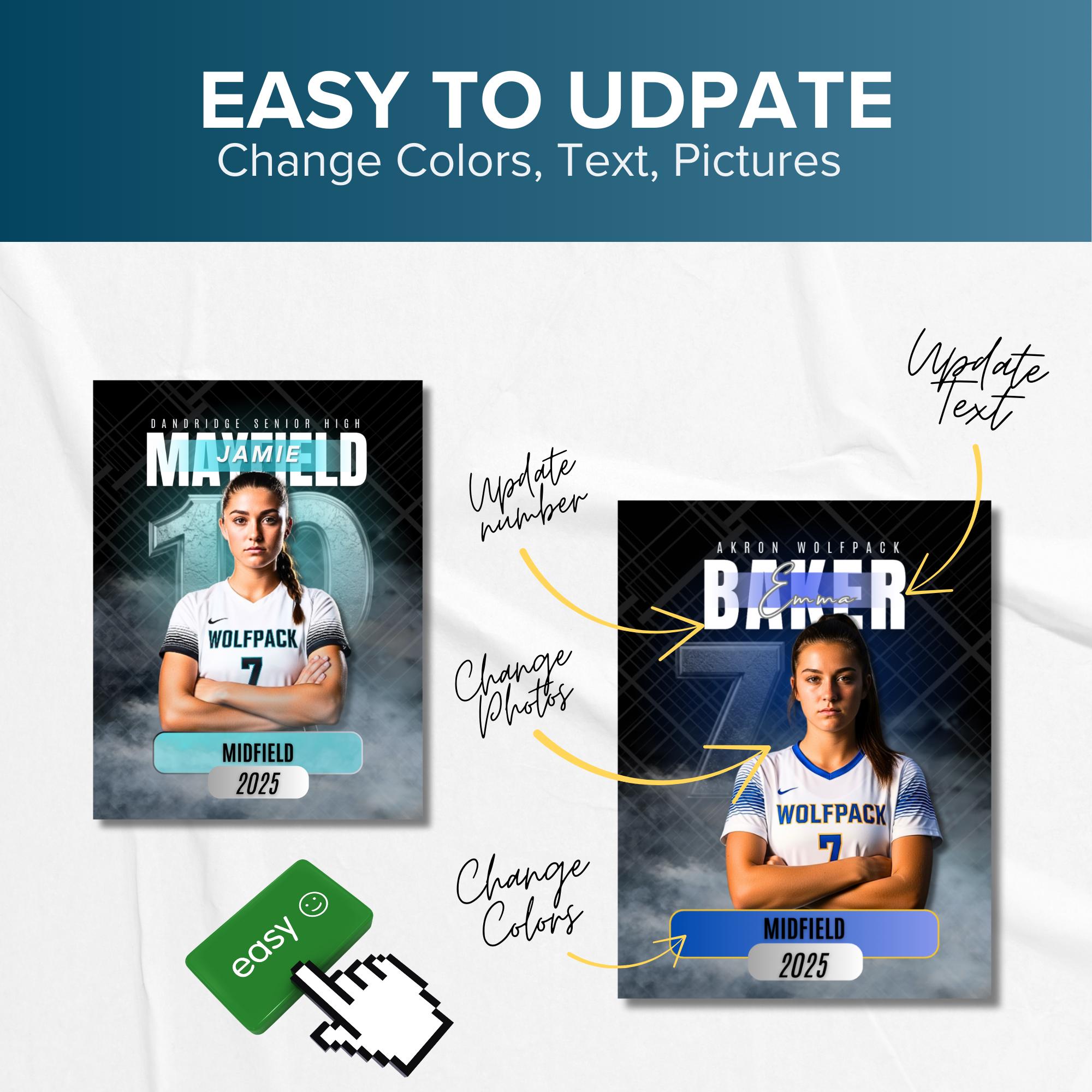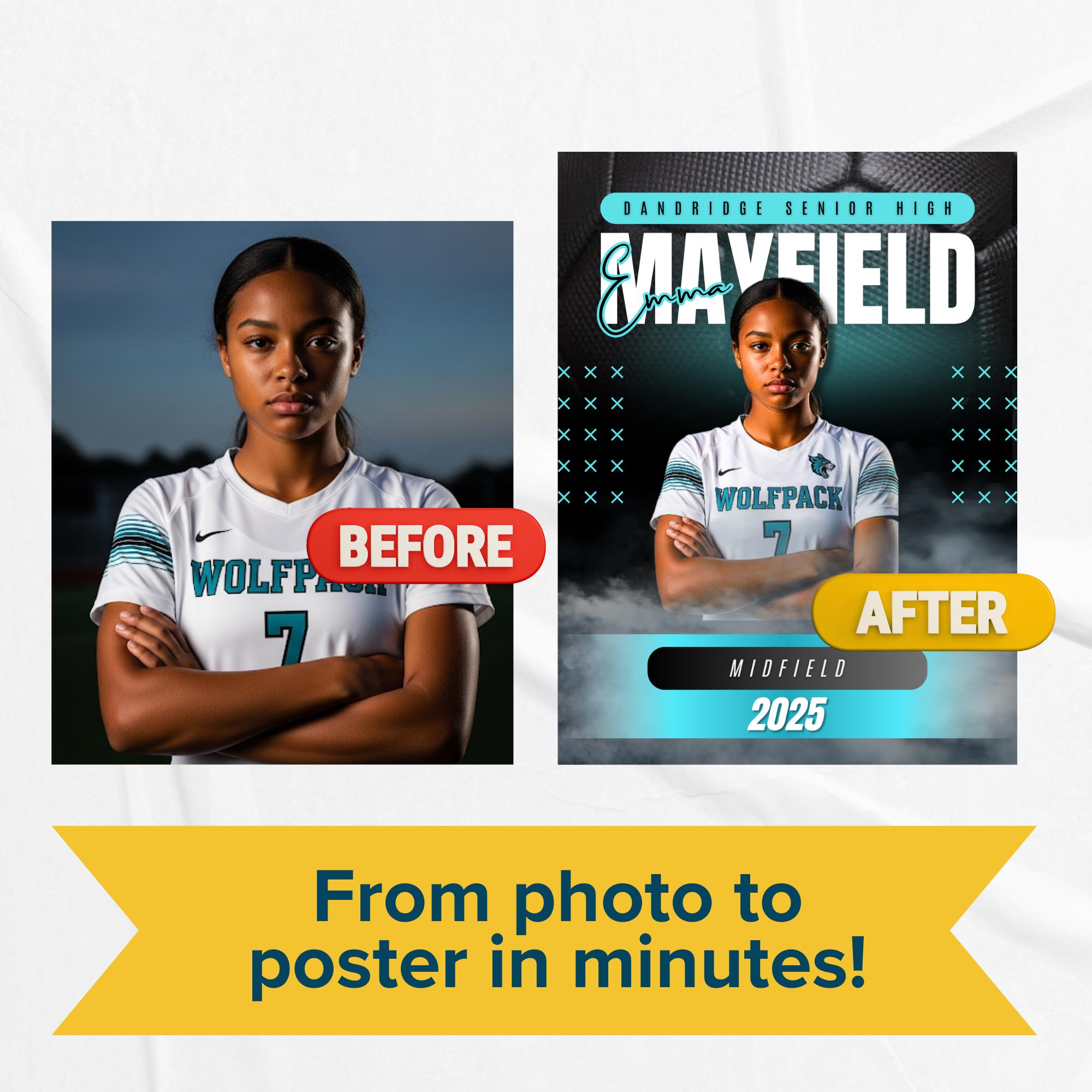 These Girls Soccer Senior Night Poster Templates help your program create a professional, cohesive look without hiring a designer.