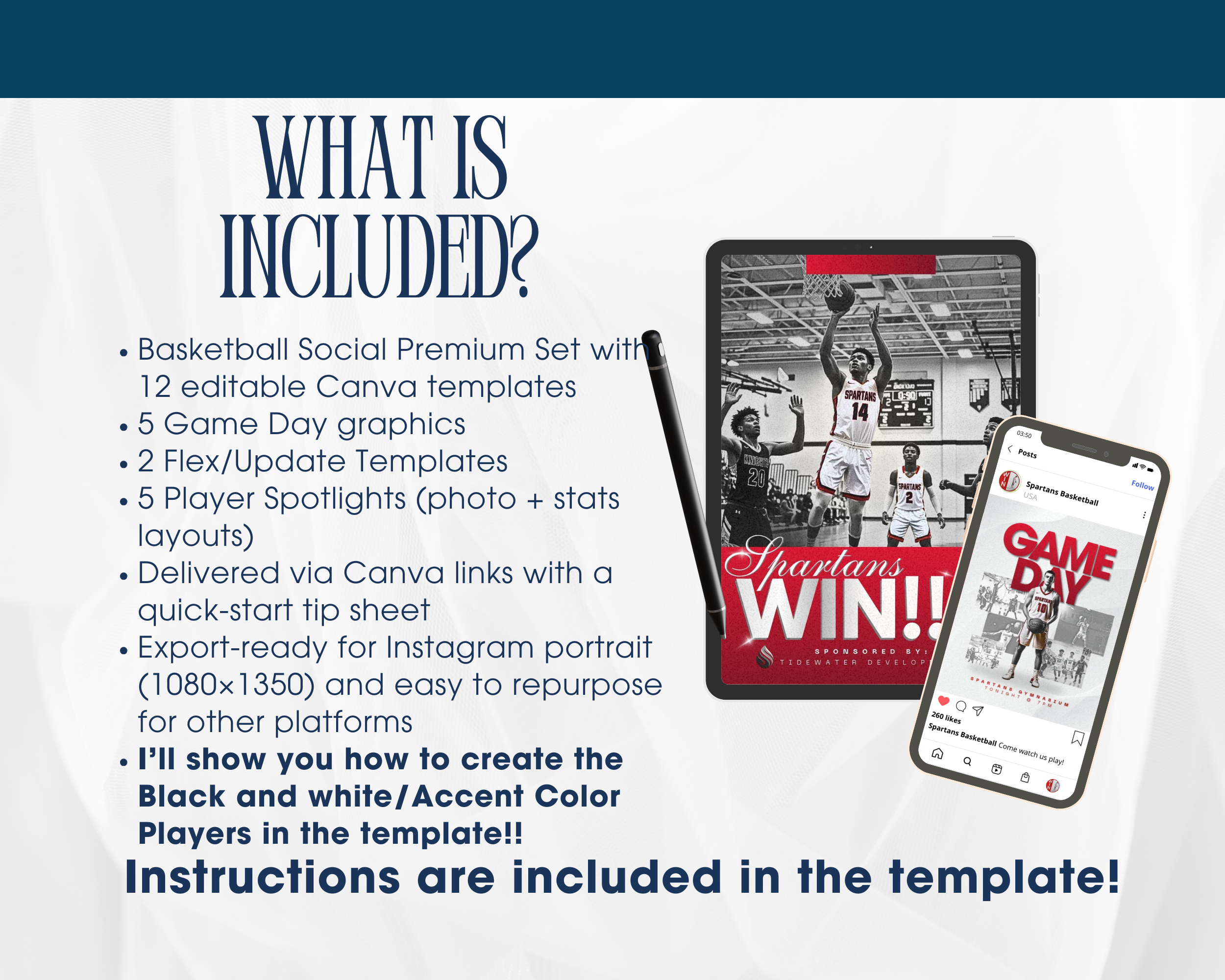 Premium Basketball Social Media Templates – Canva Game Day & Player Graphics