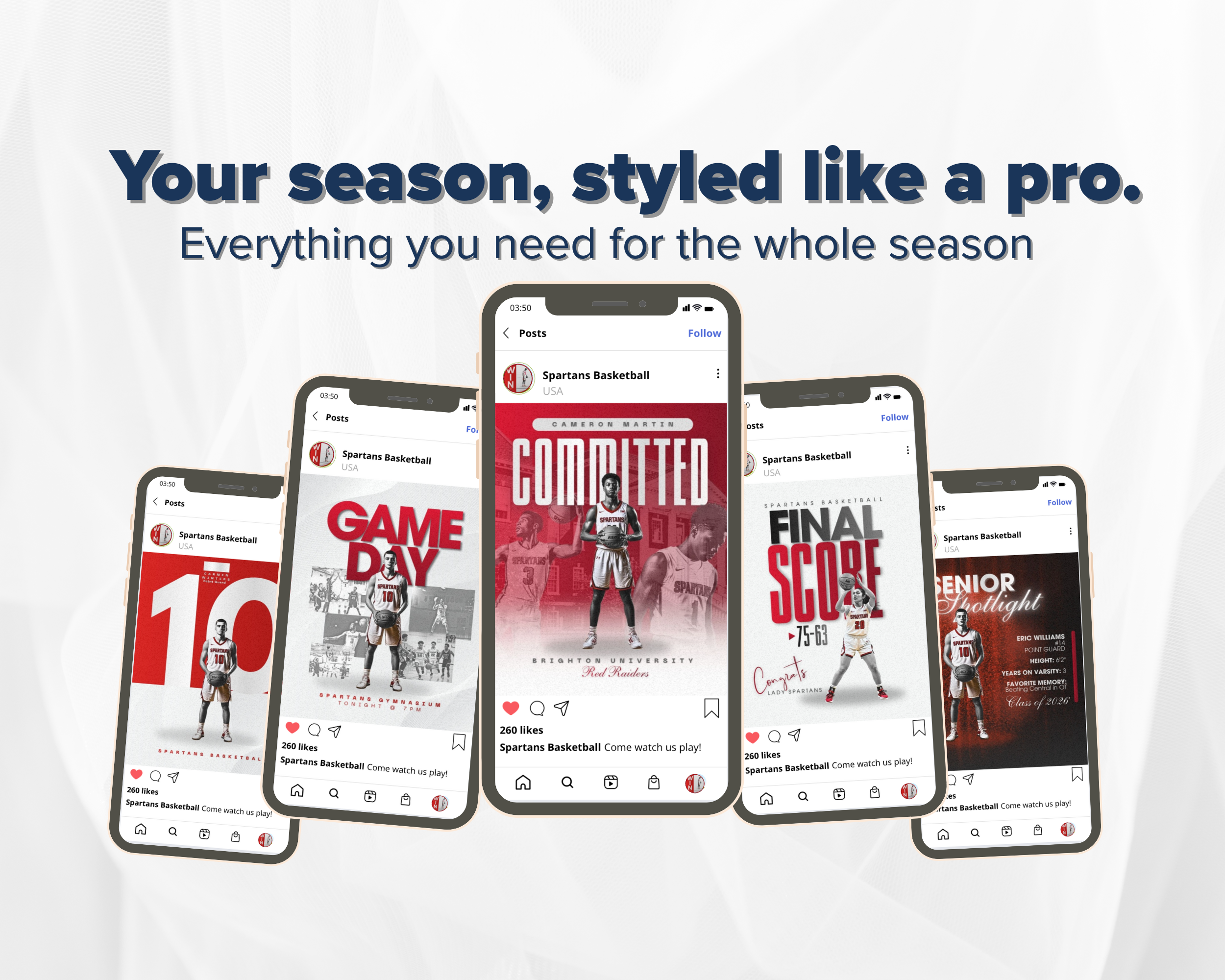 <li>5 player spotlight designs (stats, MVP, Senior Night, commitments)</li>