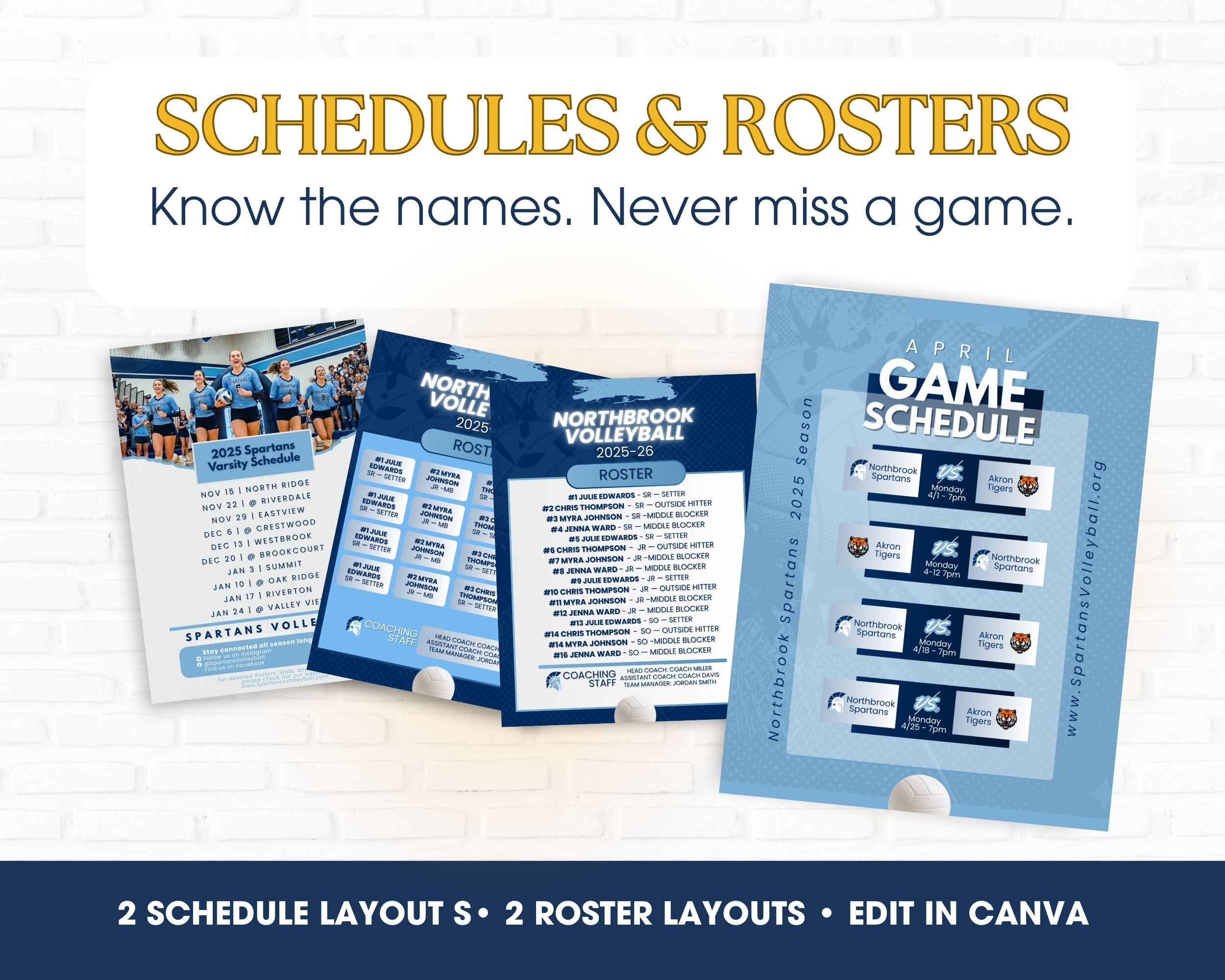 Stop scrambling for posts. This Volleyball Social Media Templates bundle gives you a full season of ready-to-edit Canva graphics so your team looks organized, consistent, and professional all year.